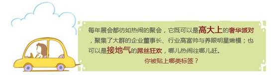 看展會,除了看產(chǎn)品、看秀場,剩下的恐怕就是看人了。每年展會都彷如熱鬧的聚會,它既可以是高大上的奢華派對,聚集了大群的企業(yè)董事長、行業(yè)高富帥與養(yǎng)眼明星嫩模;也可以是接地氣的屌絲狂歡,哪兒熱鬧往哪兒趕。展會盛宴之中,你被貼上了哪類標(biāo)簽?