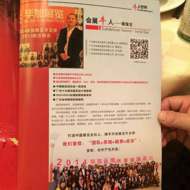 同時,我司董事長兼總經(jīng)理戴俊吉先生很榮幸成為《牛人世界》雜志中的會展牛人,這一方面證明了畢加展覽這幾年的飛速發(fā)展得到了社會各界的認可,另一方面也像大家表達了我們的理想和愿望,就像雜志上所寫,畢加人一直渴望和倡導(dǎo)的是“打造中國展覽合伙人,攜手共創(chuàng)展覽平臺夢”,這驅(qū)使和鞭撻著我們不斷學(xué)習(xí),不斷改進,不斷創(chuàng)新,以提供給客戶最好的服務(wù),我們的發(fā)展目標史“做國內(nèi)展覽營銷一體化工程的首選品牌?!?/span>