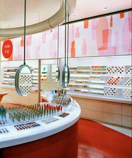 此外,由于化妝品主要在商場進行銷售,在設(shè)計時容易遇到柱子的問題,這需要設(shè)計師進行靈活處理。例如有一種中島型賣場,兩個品牌的中間由墻隔斷。假如隔斷墻的高度在1.5米,通透性通常會比較好,兩個品牌的形象都能夠充沛地展現(xiàn)出來。但要留意,這種做法的前提條件是,左邊是一根柱子,右邊是兩根柱子,最多不能超越三根柱子,這樣,顧客能夠在中島里自在穿行。但通常會遇到以四根柱子為中心的賣場,在這種狀況下,上述辦法就不適